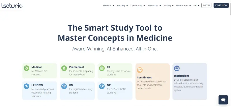 Lecturio là một giải pháp học tập toàn diện dành cho sinh viên và chuyên gia y tế, cung cấp cho người dùng truy cập đến hàng ngàn bài giảng, bài kiểm tra và tài liệu học tập khác nhau, được thiết kế để hỗ trợ cho hầu hết các chuyên ngành trong lĩnh vực y tế, bao gồm y khoa, điều dưỡng, y tế công cộng, và y tế thể thao. Với nền tảng học tập đa dạng và linh hoạt của nó, Lecturio giúp người dùng tiết kiệm thời gian và nâng cao hiệu suất học tập của mình.
